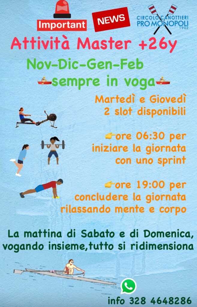 Agonismo Pro Monopoli Corsi Master Autunno 2025 Da Segreteria 8 Novembre 2025 8 Novembre 2025 Pro Monopoli Corsi Giovanili Autunno 2025 Torino, SilverSkiff. Sei atleti della Pro Monopoli si misurano sul percorso di 11mila metri sul Po